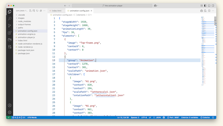 I have created a Python script to write a JSON file containing the basic config details of the animation.