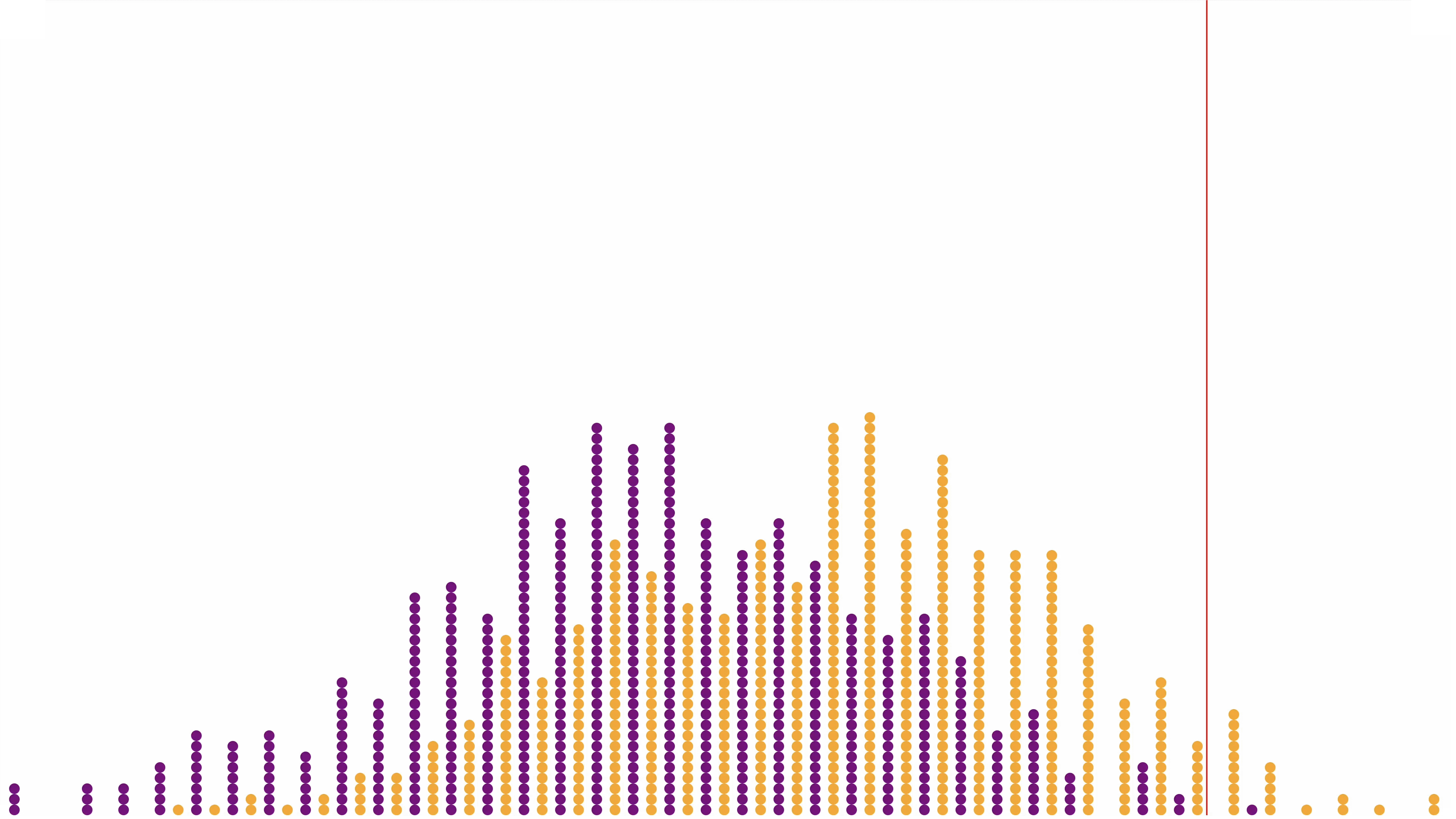 General Concept This is a multi-stage animation that uses approximately 1,000 dots to represent individuals distributed along a bell curve. The animation will visually demonstrate how a small shift in the average (mean) and a difference in variability (standard deviation) can result in a large difference at the extremes. There should be no text or labels on the animation – it should be entirely visual and self-explanatory with verbal narration.