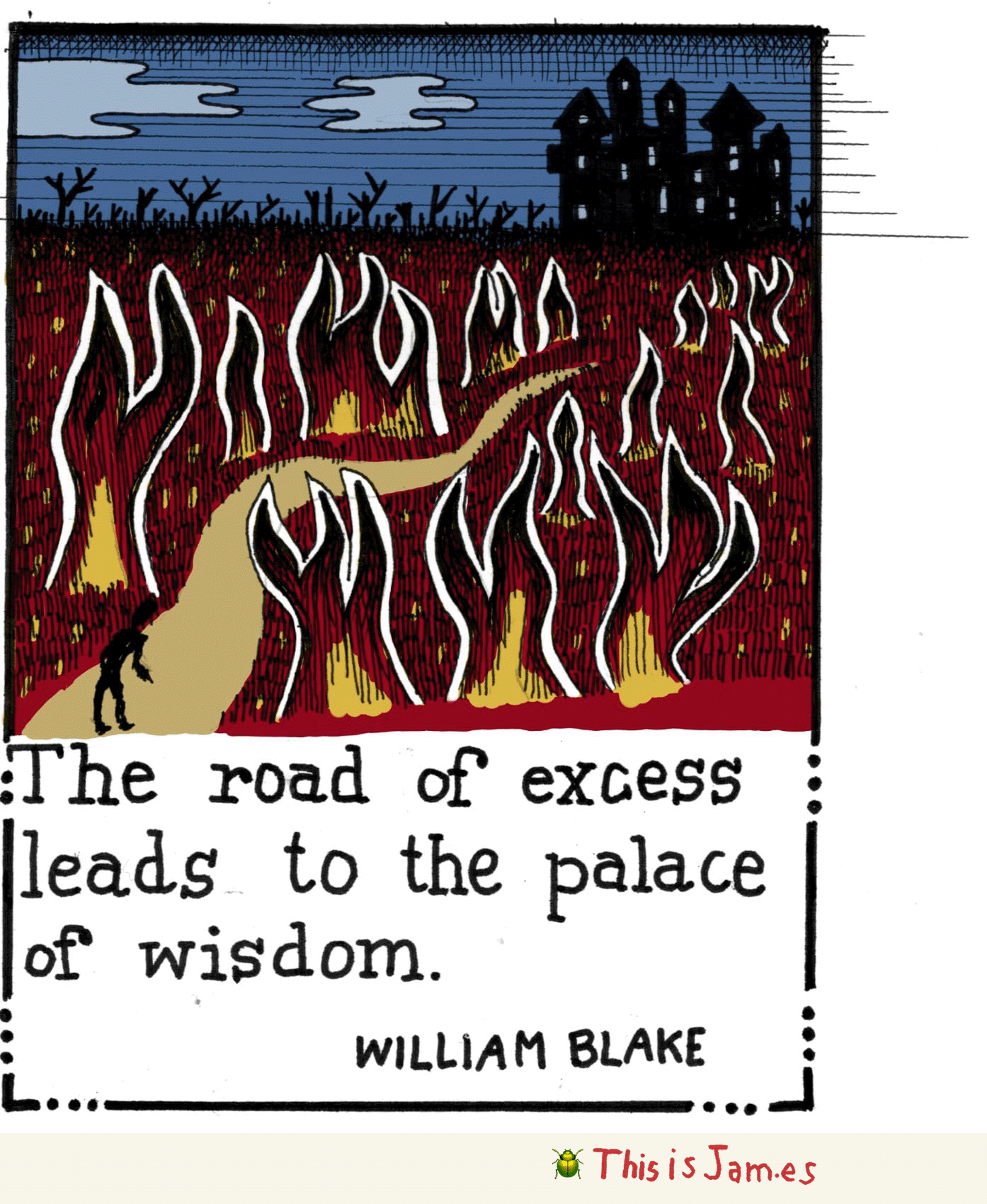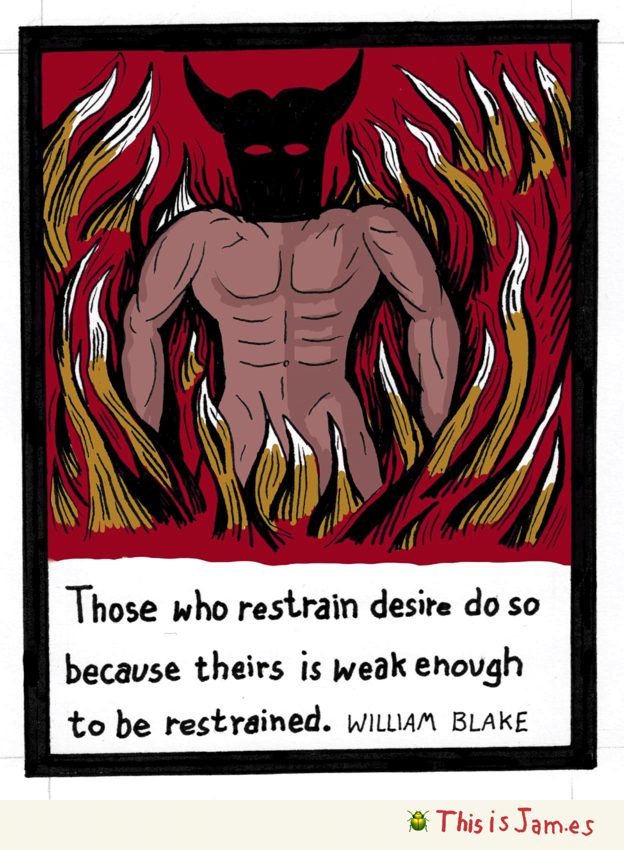 Iām a huge fan of William Blake. He was a crazy genius. These postcard sized images are inspired by quotes from his work The marriage of Heaven and Hell. The second two are from a section of the book called Proverbs of Hell, which is shown in the image above (a public domain image from the British Library).