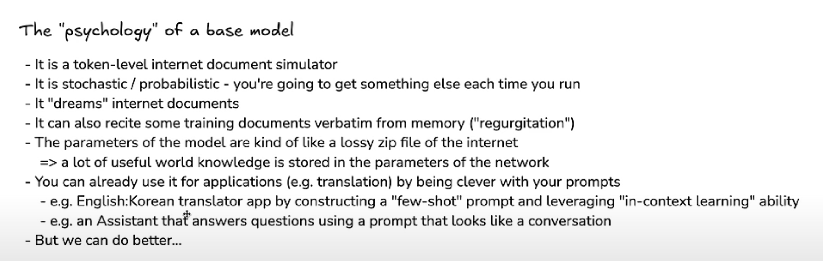 - “Learning facts” comes from pre-training. It’s like compressing the whole internet into a fuzzy/lossy file.