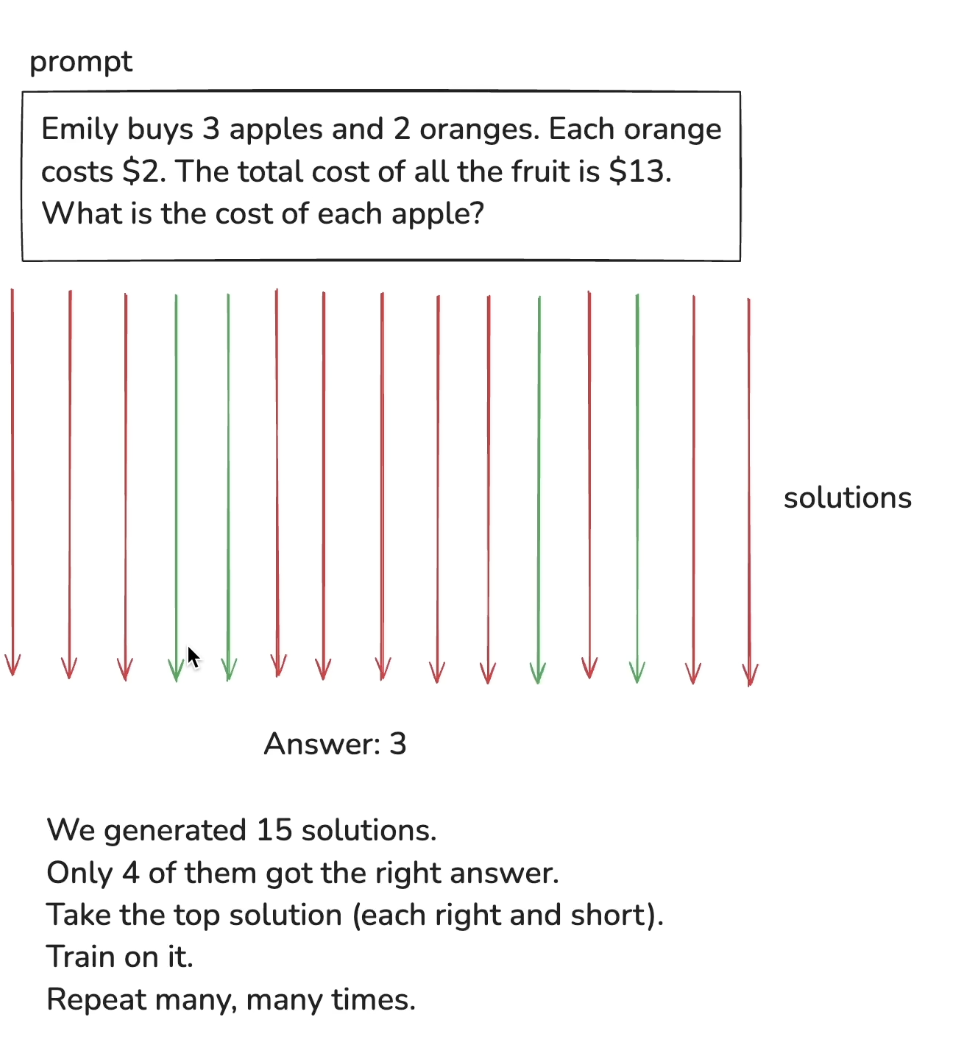 - So ideally, rather than giving it a “right” answer, we want the LLM to find out which is the best answer for it.